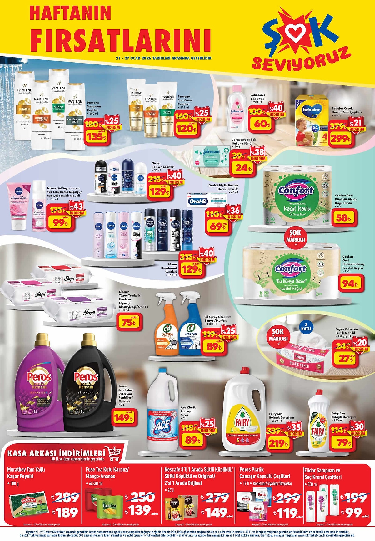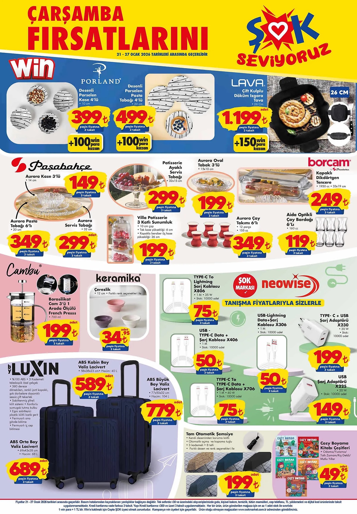 ŞOK Marketler, 21–27 Ocak 2026 tarihleri arasında geçerli olacak aktüel ürün kataloğunu yayımladı. Elektronikten mutfak ürünlerine, ev tekstilinden mobilyaya kadar yüzlerce üründe dikkat çeken fiyatlar yer alıyor.