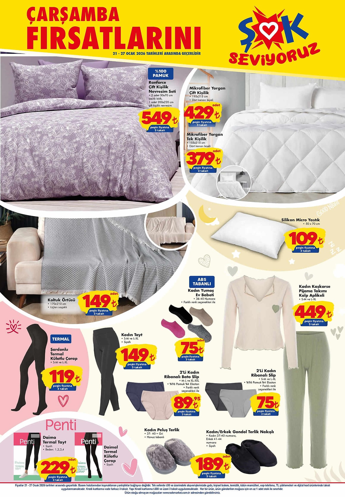 Kış aylarında ev konforunu artıracak tekstil ürünleri ile günlük giyim parçaları da bu haftaki katalogda yerini aldı.